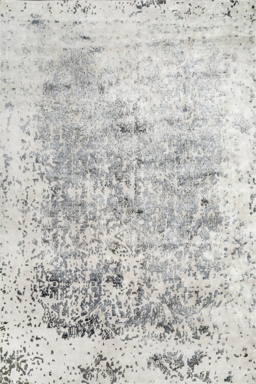 Tapis noué main, lin et fibre de bambou