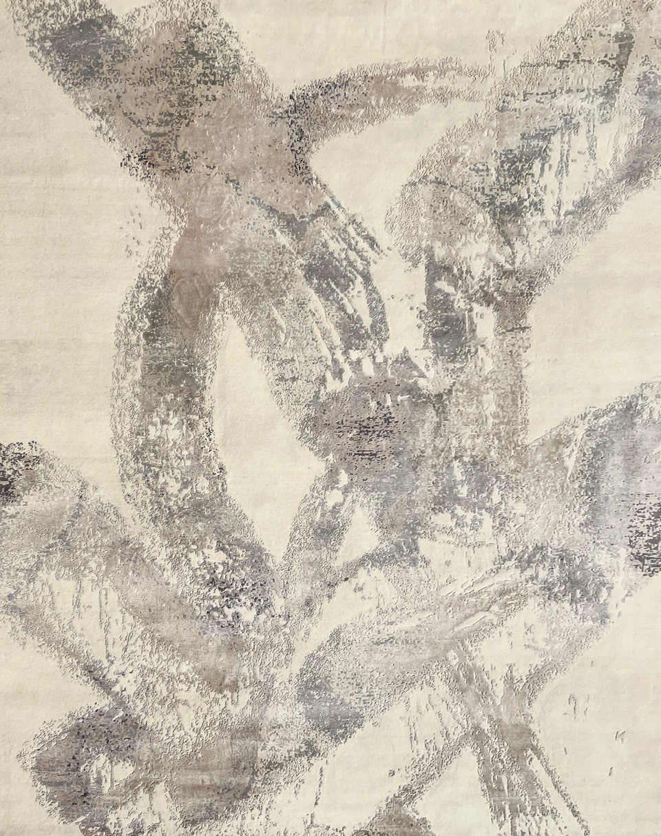 Tapis noué main, soie naturelle et laine