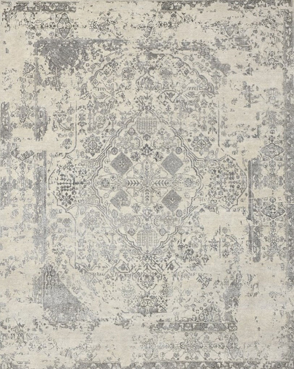 Tapis noué main, fibre de bambou et laine